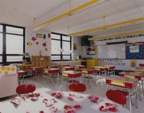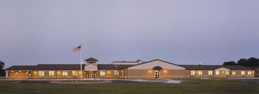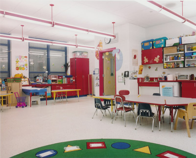 The Early Childhood Center is conducive to implementing a small, house-like program for children, thereby enhancing their educational experience. The fully climate controlled center is a 34,000 square foot masonry building with a sloped roof which includes finishes and design features appropriate for early childhood education. The center includes regular and special education classrooms, small group instruction areas, a combination physical education/cafeteria facility, art room, nursing suite and administrative offices. Walkways and an adjacent play area complete the complex.